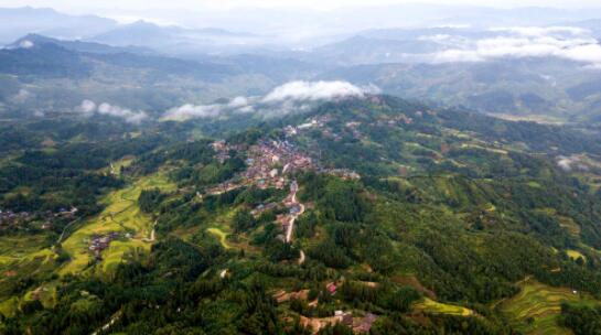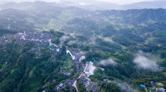 :8月30日,一场微凉的秋雨为贵州省从江县丙妹镇大塘苗寨的披上了一层轻纱霓裳,从空中俯瞰,村庄、梯田、公路、山川在薄雾中时隐时现,构成了一幅壮美的水墨画卷。
