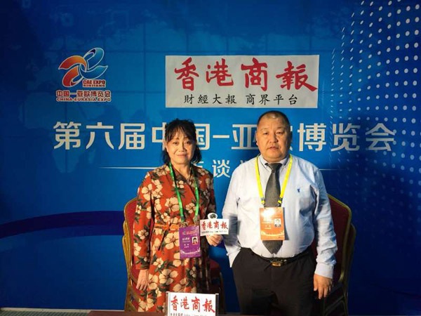 博州招商局局长铁山在亚博览会上接受本报记者黄萍访谈
