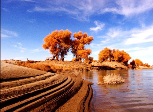新疆维吾尔自治区轮台县地处天山南麓、塔里木盆地北缘,这里有世界上面积最大、分布最密、存活最好的“第三纪活化石”——40余万亩的天然胡杨林