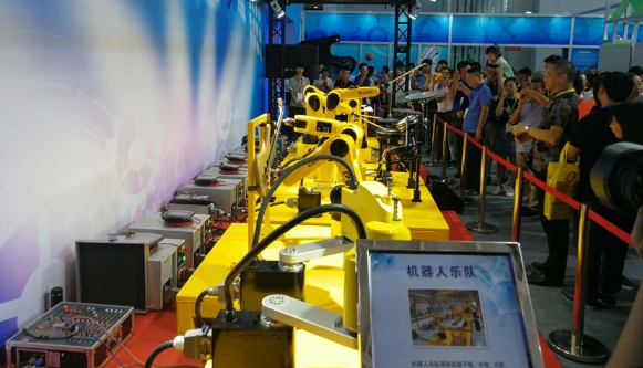 此外,科技部展区机器人展品不但数量增加而且范围扩大,除工业机器人外新增加了机器人乐队、机器人投篮、机器人拼屏、机器人素描、腹腔镜手术机器人、五代智童机器人、智能双臂机器人、果蔬采摘机器人等,可谓异彩纷呈。