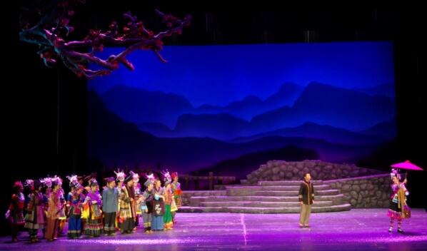 当晚,在一曲清亮的童声演唱《月亮船》中,大幕拉开,眼前的水车、山道、老树、苗家木楼将观众带到贵州丹寨的美丽场景里,欢快优美的花灯歌舞中,一个感人的故事慢慢展开……。