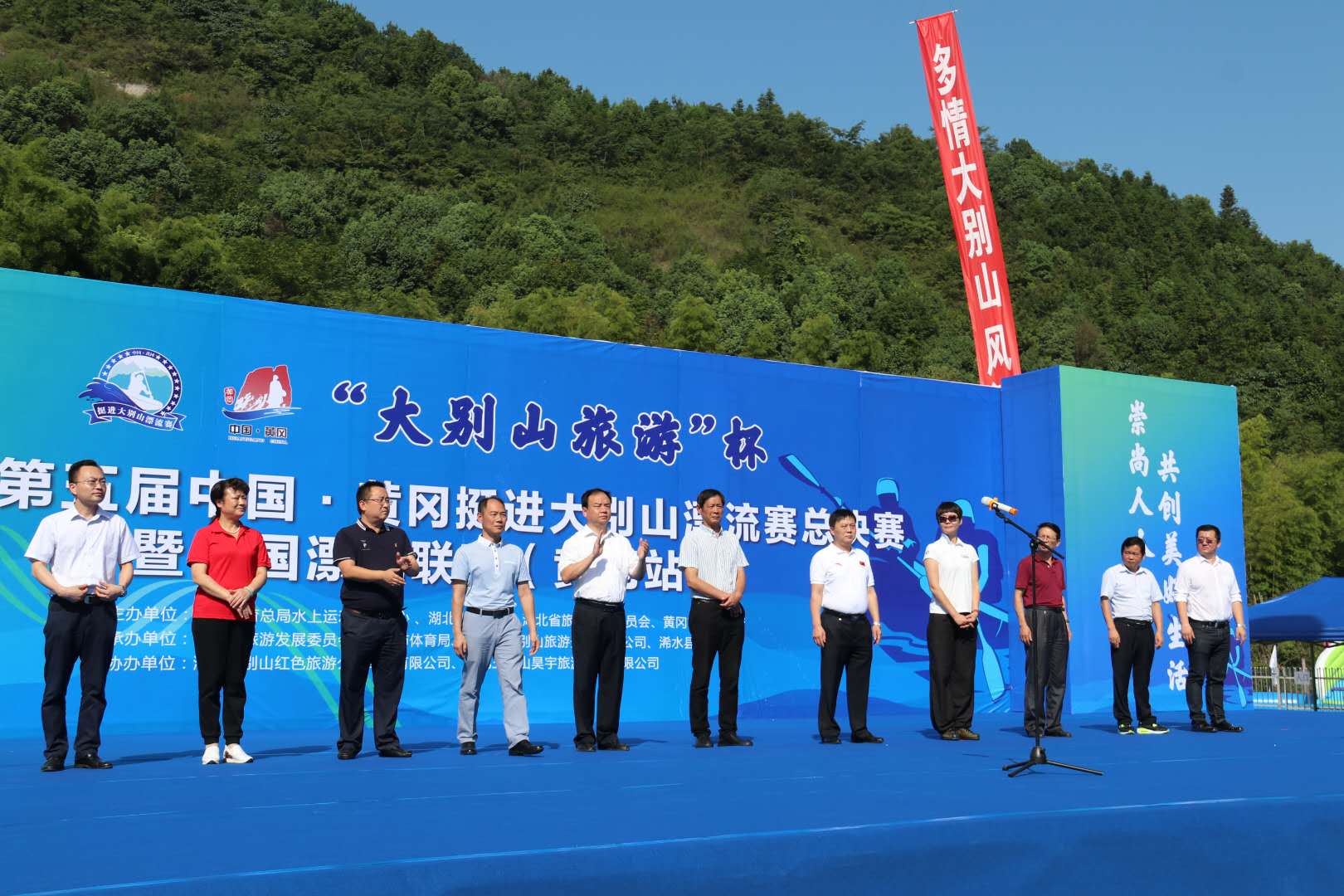 “大别山旅游”杯2018第五届中国•黄冈挺进大别山漂流赛,由国家体育总局水上运动管理中心、省体育局、省旅游委、市政府联合主办,市旅游委、市体育局、市大别山旅游开发有限公司、浠水县政府承办、湖北大别山红色旅游公路经营有限公司、湖北三角山昊宇旅游开发有限公司协办。