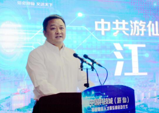 东道主中共游仙区委书记江彬在启动仪式上致辞