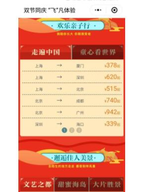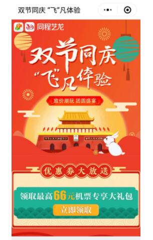 据了解,今年中秋国庆期间,同程艺龙将通过微信小程序平台、官方网站、移动客户端推出一系列优惠活动,除了目前已经上线的特惠活动外,未来一周内还将推出“拼团赢红包”的社交玩法,让参与者通过与好友分享获得更多优惠。