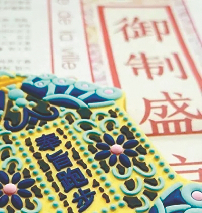 在今年沈马的吉祥物“努爷”的特许经营摊位上,最富特色的是一款精美别致的“奉旨跑步”行李牌。