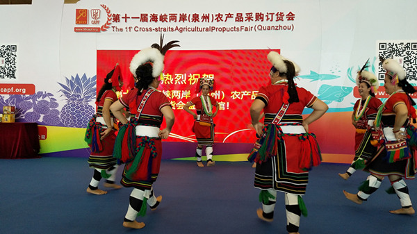 展会上,台湾少数民族代表带来古调及传统乐舞文化,并在展馆内进行展演
