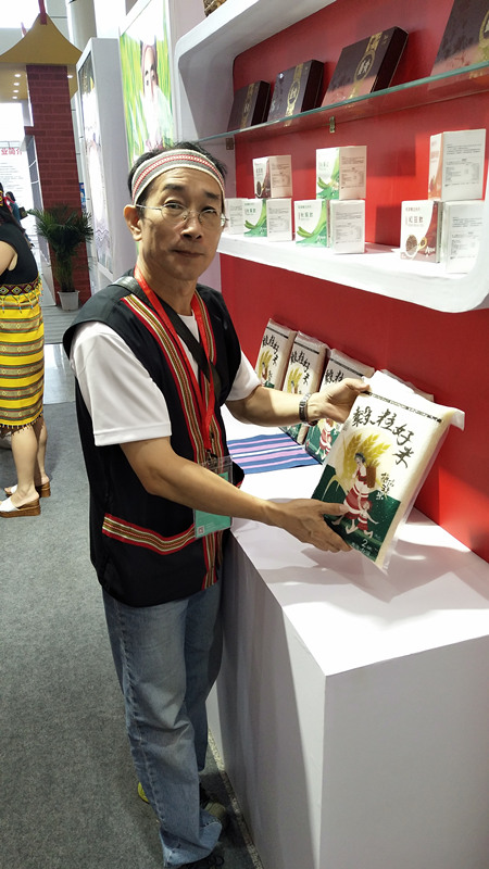 台湾少数民族代表首次来泉州参展,并向观众介绍他们的大米产品