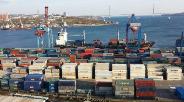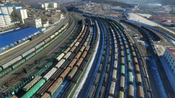 海参崴等待装船海运的班列