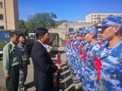 “9.3大阅兵飞过天安门广场的许多飞机,就是咱平房区军工企业生产的,平房区有许多大型军工企业和公司,我们还是哈尔滨新区产业支撑区,欢迎你们将来回家乡建功立业……”“今天你们马上就要走进军营,这是人生新的起点新的转折,无论你们将来发展的怎么样,都要想着家乡人民永远支持你们……”刘书记满怀自豪的向新兵们介绍平房区建设情况,也表达欢迎新兵们早日凯旋归来之情。