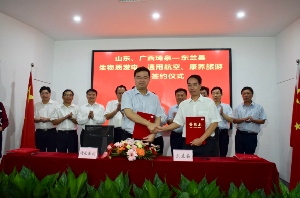 【香港商报网讯】 记者蔡宁报导: 9月11日上午,在第15届中国-东盟博览会即将开幕之际,广西东兰县在南宁与山东琦泉集团就投资生物质发电、通用航空、康养旅游方面项目签约。东兰成功揽到投资总额超10亿元大单,拉开了今次中国—东盟博览会投资项目签约的序幕。 据了解,山东琦泉集团是一家以生物质热电联产为主营业务,兼营电力建设、通用航空等业务的综合性集团,此次将项目落地东兰是看中东兰丰富的生态资源和红色旅游资源。山东琦泉集团董事局主席董静波和董事长董统玺表示,集团将在东兰工业区投资四亿元建生物质发电厂,投资两亿元建东兰红色旅游通用飞机场。此外,集团也将投资进行红水河旅游项目开发总规划,推进红水河第一湾旅游项目,与双语法官学院共建航空飞行员培训学校等,累计总投资在10亿元以上。 广西东兰县委书记黄贤昌在签约现场接受本报采访时表示,东兰生态环境优越,全县森林覆盖率80.15%,同时也是全国著名的革命老区和世界闻名的长寿之乡,发展旅游和生态产业富有深厚的基础。接下来,东兰将立足资源优势,坚持“生态立县、旅游旺县、科教兴县、产业富县”发展战略,加快发展康养旅游、生态农业和高新技术等产业,打造红色东兰和绿色生态品牌,推动县域经济持续增长。 黄贤昌还称,广东和广西地缘相近,文化相通,东兰县是深圳市龙华区的对