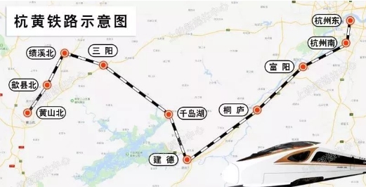 黄杭铁路由中国铁路总公司与浙江省、安徽省共同投资建设,工程总投资约365亿元。这条铁路全长265公里,安徽境内90公里,从黄山北站出发,沿途设10个站点,分别是黄山北、歙县北、绩溪北、三阳、千岛湖、建德、桐庐、富阳、杭州南、杭州东。