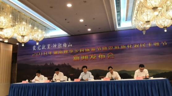 【香港商报网讯】记者 何雯 报道:9 月12 日,湖南省政府新闻办召开新闻发布会,宣布2018 年湖南秋季乡村旅游节暨娄底新化农民丰收节将于2018 年9 月28 日-30 日在新化县隆重举行。本次活动旨在培育壮大乡村旅游文化产业,打造乡村旅游品牌,提升乡村旅游服务水平,推进旅游精准扶贫,促进县域“文旅农”经济大发展,全力助推新化县创建全域旅游示范区。
