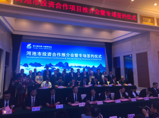 【香港商报网讯】:记者13日从第十五届中国-东盟博览会和商务与投资峰会河池专场签约仪式暨河池市招商引资推介会获悉,河池市环江毛南族自治县在本次会议上签约招商引资项目5个,总投资额30.5亿元。