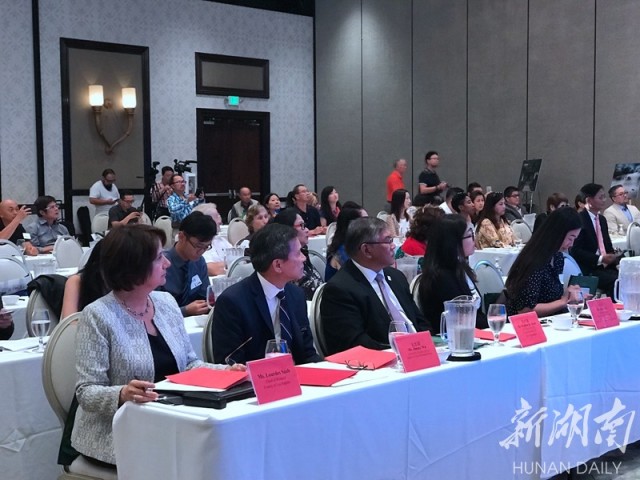 新湖南客户端9月13日讯(通讯员 王一行 记者 田甜)洛杉矶时间9月12日,由湖南省旅游发展委员会主办、洛杉矶魅力中国中文电视承办的“锦绣潇湘”走进美国----湖南旅游推介会在洛杉矶隆重举行。这是我省围绕国际航线开通,在国际旅游市场调研、旅游产品研发和旅游品牌营销等方面,开展“锦绣潇湘”走进美国文化旅游合作交流系列活动的重要内容之一。除推介会外,系列活动还包括“锦绣潇湘”走进美国文化旅游图片展、洛杉矶-湖南文化旅游合作座谈会和当地文化旅游机构及知名旅行商走访拜会活动。