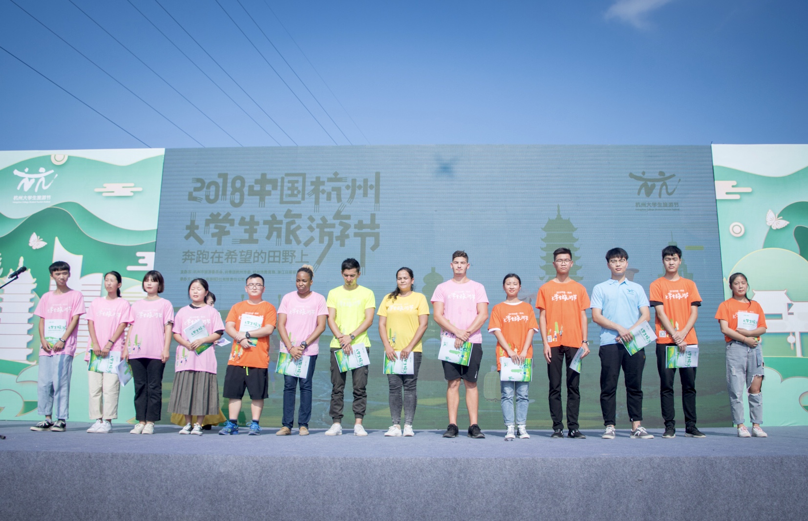 开幕式现场,14名中外大学生受邀登台,参加“诗走魅力杭州”大学生原创诗歌吟诵,将杭州的美丽风景,美丽故事,美丽人物,通过充满韵味、充满朝气的诗句一一呈现。最后各主办方领导在一起点亮“杭州旅游火炬”中拉开了本届大学生旅游节的序幕。