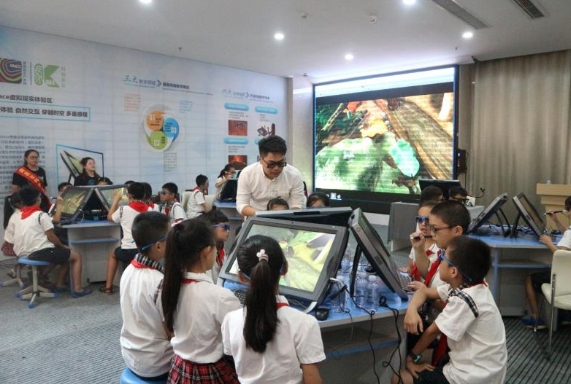 【香港商报网讯】“好好玩啊,玩们在画包公,哈哈”在江西科骏ARdEZ产业园主会场的南昌实验小学的孩子们正在体验着VR技术的教学小游戏。