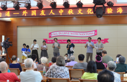 海门山歌是海门先民在长期生产生活中创造的精神财富。2008年,海门山歌入选国家级非物质文化遗产名录,成为海门最靓丽的文化名片之一,是江苏最有特色和活力的地方剧种之一。活动现场,外国友人听完海门山歌非遗传承人宋卫香婉转甜美的曲调后,纷纷登台学唱《海门山歌交关多》。85岁的朱寒尘老人挥毫泼墨题写了“中秋快乐”,赠送给外国友人,同根同梦,中秋佳节是全球华人寄托思念、表达美好感情、阖家团圆的节日。来自新加坡的陆婉仪说着一口流利的普通话,目前在南通思德福国际学校任教。她说,虽然是第三代华人,但对中华传统佳节日渐陌生,在这里,深刻感受到了中华传统文化的魅力。