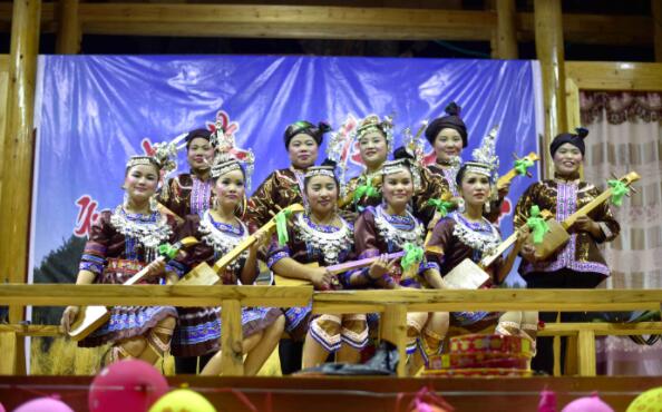 贵州省从江县斗里镇湾里村,来自广西融水县大年乡的侗族村民在表演侗族琵琶歌。 吴德军 摄