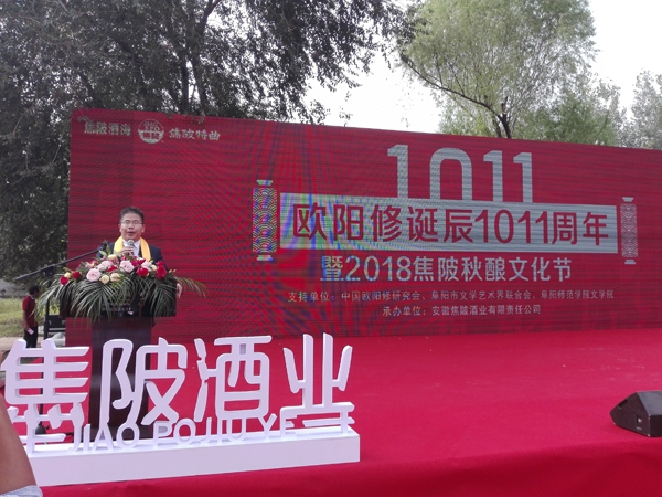 【香港商报网讯】9月19日,由中国欧阳修研究会、阜阳市文学艺术界联合会、阜阳师范学院文学院支持、由安徽焦陂酒业有限责任公司承办的欧阳修诞辰1011周年暨2018焦陂秋酿文化节正式开幕!来自国内欧阳修研究会的学者、媒体记者社会各界上千人参加本次文化节。