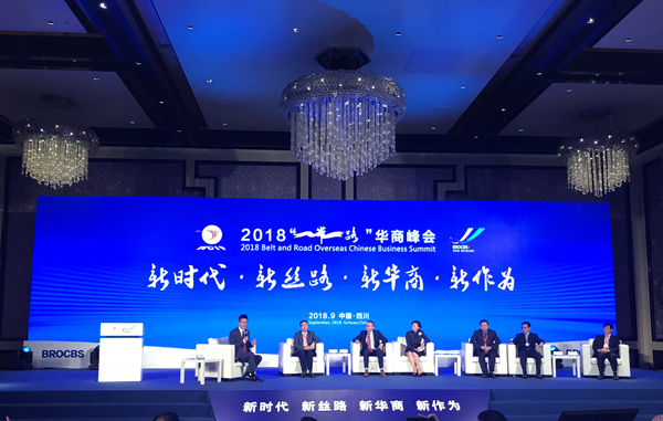 【香港商报网讯】记者 付莉莉 报道: 9月19日,由四川省政府、中国侨商联合会主办,四川省侨联等有关单位联合承办的以“新时代•新丝路•新华商•新作为”为主题的2018“一带一路”华商峰会在成都举行。来自40余个“一带一路”沿线国家和地区的侨界商协会负责人、重点侨商侨领、海外华文媒体代表、在蓉留学生代表以及四川华文教育研究联盟成员单位等300余名嘉宾齐聚蓉城,就海外华侨华人参与“一带一路”建设建言献策。