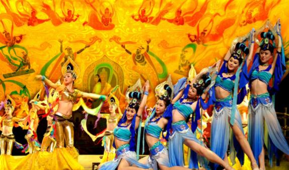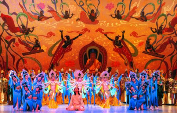 《大夢敦煌》是繼《絲路花雨》之后中國民族舞劇達到的又一高峰,有著“可移動的敦煌”、“中國版《羅密歐與朱麗葉》”之稱,由蘭州歌舞劇院創作演出。該劇以古代敦煌為時空背景,講述青年畫師莫高和少女月牙的動人愛情故事。除了表達人間亙古不變的愛情外,該劇還展現了博大精深的石窟藝術、濃郁的佛教文化、古絲綢之路上的貿易往來、西北的風土人情,復活了1000多年前的敦煌市井風情。