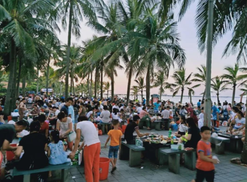 中秋節當天下午,眾多遊客齊聚海口西海岸假日海灘賞月,椰林燒烤、溫泉戲水等處處充滿著歡聲笑語。燒烤園裡,一群群市民圍坐在烤爐邊,邊聊天,邊賞月,邊吃著燒烤,其樂融融。