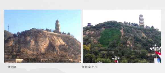 據介紹,冠中生態的系列植被恢復與環境生態修復技術被廣泛地應用于道路、隧道、鐵路、河道建設以及礦山開採等所產生的各種高陡裸岩邊坡的植被恢復,也適用於貧瘠地、鹼性酸性土地、乾旱少雨地、有毒工業尾礦等各種特殊成分的土壤修復和生態修復,在中國五大氣候帶內,從0海拔的平原到海拔高達4000多米的高原地帶,從最北端的極寒小鎮到最南端的熱帶海島均有成功案例,通過機械噴播作業的方式,在受損面上噴播土壤培養基,一般1-2個月就會長成鬱鬱蔥蔥的樹林,使環境歸於生態、歸於自然。