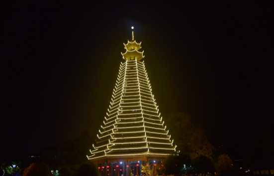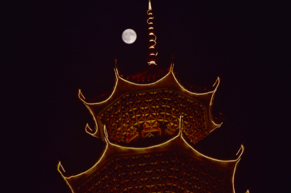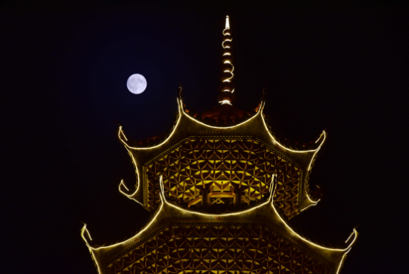 9月24日是中秋節,貴州省黔東南苗族侗族自治州從江縣一輪圓月掛上空,人們共賞明月,慶祝佳節。(吳德軍 )