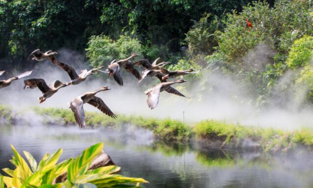 犹如贵妇般优雅迷人的火烈鸟、列入《世界自然保护联盟》(IUCN)濒危物种红色名录的丹顶鹤和东非冠鹤、全身白色羽毛的白琵鹭、鸟界中的“大嘴代表”鹈鹕、来自于非洲马达加斯加的“土著飞鸟”黄嘴鹮鹳等,数百只来自世界各地的珍稀鸟类首次以亲子家庭齐齐亮相,在长隆飞鸟乐园“百鸟飞歌”舞台展翅共舞,红红火火、热热闹闹庆贺国庆。