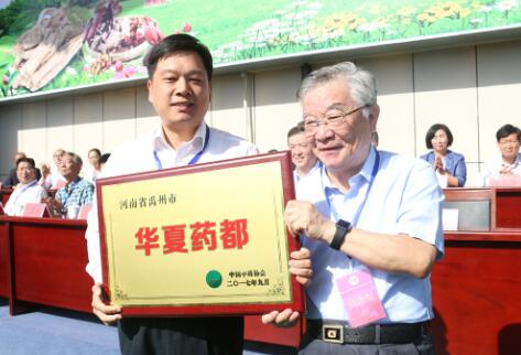 中國中藥協會會長向禹州市授以“華夏藥都”牌匾
