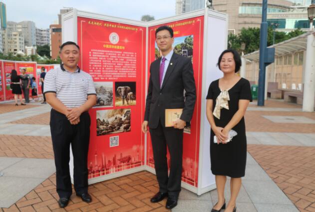 【香港商报网讯】记者 苏伟 摄影报道:秋天的香港,云淡风轻,鸟语花香,清爽宜人。9 月 27 日下午,由香港商报、经济导报、全球商报联盟主办,香港民政事务局、中国国家图书馆支持,香港中华总商会、香港总商会、香港中华厂商联合会等 23 家机构及深圳特区报协办的「走进新时代 共筑中国梦——改革开放 40 周年图片展」,在香港著名地标——尖沙咀九龙公园广场隆重揭幕。来自深圳烙画基地带来的烙画展板和深圳博物馆展板并列放在第一排显著位置,受到来宾们的极大关注,香港民政事物总署副署长王秀慧和港区全国人大代表、工联会会长吴秋北等嘉宾不仅饶有兴趣观看了烙画展板还欣然接受了深圳弘扬烙画艺术发展有限公司总经理张守福赠送的非遗烙画“马到成功”纪念品。