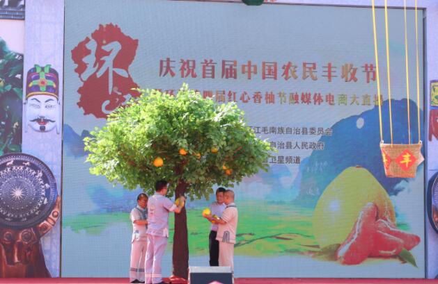 【香港商報網訊】10月1日,舉國歡慶的同時,2018年廣西河池市環江毛南族自治縣慶祝首屆農民豐收節暨第四屆紅心香柚節系列活動開幕式如期舉行。環江紅心香柚果品比賽、香柚藝術雕刻比賽、徒手開柚子比賽、紅心香柚展示展銷,知名網紅全程直播香柚節和銷售柚子等一系列精彩的活動吸引了上萬遊客。