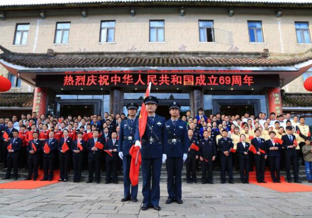 當日上午7時,隨著清亮的歌聲在北海賓館廣場前唱響,莊嚴肅穆的升旗儀式在中外遊客和景區員工的見證下隆重舉行。在藍天白雲的掩映下,五星紅旗迎風飄揚,與青松黛峰構成一幅壯美的河山圖,人們揮舞手中的旗幟,大聲為祖國喝彩。