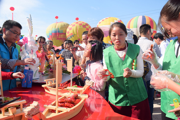 【香港商报网讯】10月1日,中国湖城江西鄱阳县举办首届鄱阳湖龙虾节,知青那些事儿(情景再现)、大师带你画龙虾、龙虾厨艺大赛、“幸福年景丰收上饶”农产品展销、龙虾垂钓大赛、千人鄱阳湖龙虾宴、乡村音乐秀等活动轮番上演,精彩绝伦。(操端晶)