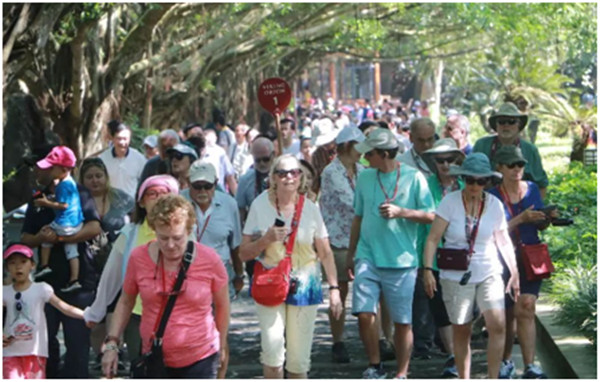 这批欧美游客大部分以老人居多,当天上午,在游览雷琼火山口地质公园、五公祠、海口骑楼老街、万绿园、海南省博物馆等海口景区景点过程中,看到海口当地的火山特色民居、火山特色农产品及不一样的火山文化后,老人们不停地边拍照留念,边说“good”。