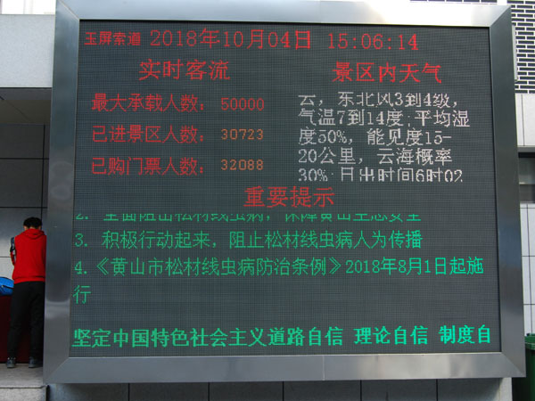 黄山风景区信息中心主任梁焱说:“在管理上,我们通过电子智能门禁系统和车牌识别系统,能够实时的知道进出景区的车辆数、上山的人数和乘坐索道的人数。通过可视化综合服务平台,指挥调度中心可以实时的了解到人流密集地和车流密集地,便于指挥中心提前预判,及时的进行指挥调度,确保安全有序的度峰。”