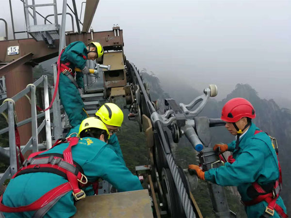 当最后一波游客走出索道车厢时,他们便开始了紧张忙碌晚检工作,这个精细活一干便是好几个小时,往往夜里十点以后才能下班,然而第二天一早四点多又要再次检查,确保索道安全。