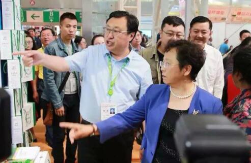 第六屆黑龍江綠博會上,徐學陽向黑龍江省委常委、副省長賈玉梅介紹北大荒特色產品
