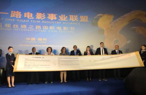 【香港商報網訊】8日,第五屆絲綢之路國際電影節(福州)《一帶一路電影事業聯盟》聲明書簽約儀式在福建省福州市舉行。《一帶一路電影事業聯盟》是在第四屆絲綢之路國際電影節發起並成立“絲綢之路及沿線國家電影產業交易平臺聯盟”基礎上,邀請部分絲綢之路國家及沿線相關國家參加項目簽約儀式、共同商討並發佈《一帶一路電影事業聯盟》聲明書、各國及中外合作影視行業相關政策。