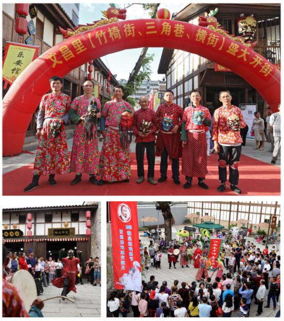 南豐三溪鄉石郵村的國家級非遺儺舞表演隊,首次到文昌里走街串鋪進行儺舞表演。