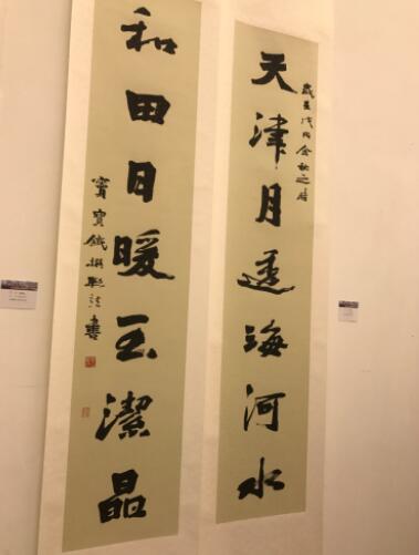 數十幅書法作品,用蒼勁有力的筆觸,繪就對津和兩地情誼的讚頌。其中,天津九位書法家,在和田共同創作書法作品《愛心連兩地 共建耀昆侖》。用真、草、隸、篆、行書等中國書法書體呈現,把對新疆和田建設和美麗風光的感受融入筆端,創作出一幅既豐富又和諧的書法作品。