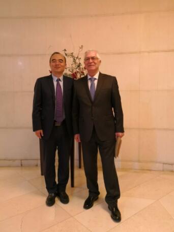 黑龍江省僑聯黨組書記、主席郭占力(左),烏克蘭駐華大使奧列格·焦明(右)