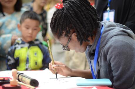 來自納米比亞的于曉娜學寫中國書法