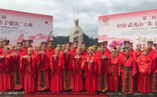 10月17日,朱子誕辰888周年之際,第二屆武夷山“朱子婚禮”大典在福建隆重舉行。來自印尼、馬來西亞、新加坡、緬甸、韓國等國家和香港、臺灣地區的海內外1000多名朱氏宗親見證33對新人人生濃墨重彩的一頁,重現一場沿襲千年的人文經典婚禮儀式。這也標誌著朱子婚禮得以復活、重現,優秀傳統文化得以傳承。
