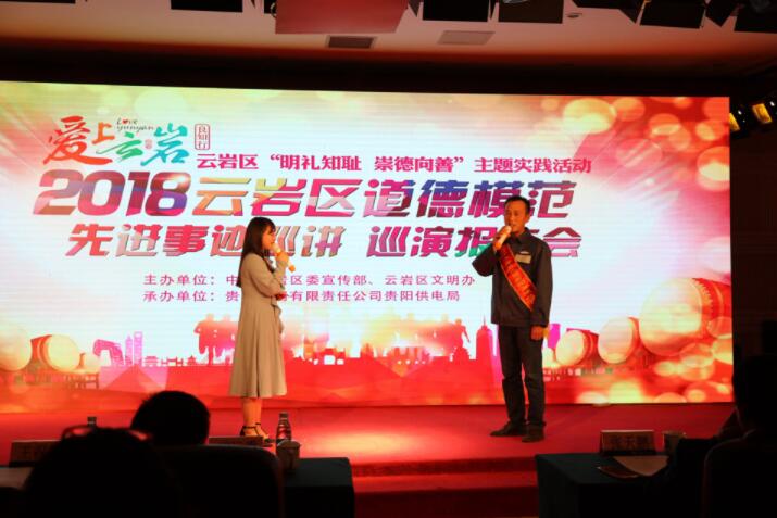 當天巡講巡演會上,居民們的“勤務兵”,深受喜愛的社區書記宋玉英;見義勇為,榮獲首屆全國見義勇為道德模範提名獎的計程車司機劉國紅;與鐵塔為伴,用青春捍衛貴陽電網安全的好男兒羅越濤;以為百姓“掌好燈”為宗旨,用規範化管理“護航”電網安全可靠運行的500千伏息烽變電站班組……接連登場,通過人物講述、情景劇、小品等多種喜聞樂見的形式呈現,把助人為樂、見義勇為、敬業奉獻等道德之美傳遞給現場觀眾,近3個小時的巡演活動掌聲不斷。