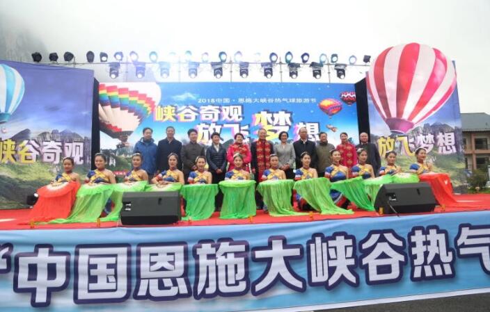 【香港商報網訊】記者 李映華 報導:10月21日上午10點,“峽谷奇觀 放飛夢想——2018中國恩施大峽谷熱氣球旅遊節”在景區廣場盛大開幕,旅遊體育文化傳媒完美結合。特邀嘉賓韓國駐武漢總領事金永瑾出席開幕式,恩施州人民政府副州長高敬佩女士、湖北省旅游文化投資集團有限公司黨委副書記副總經理陳華志先生,湖北廣播電視臺副臺長張建紅女士,恩施市委常委宣傳部部長郭亞妮女士等共同出席并致辭。