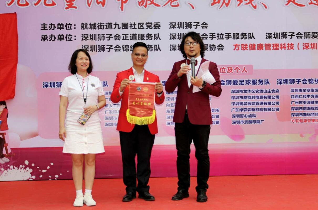 【香港商報網訊】10月13日,由深圳狮子会和深圳宝安区航城街道九围社区党委主办,由深圳狮子会正道服务队、狮爱足球服务队、手拉手服务队、锦绣服务队、深圳市侨媛协会联合承办,各爱心企业和协会联合协办,由方联健康管理科技(深圳)有限公司冠名赞助的九九重阳走进九围社区敬老助残大型关爱慰问活动在宝安区航城街道九围社区广场圆满成功举行。本次活动的主题是“我们都会老,我们都敬老”,这已经是深圳狮子会第三次走进九围社区的敬老助残关爱慰问活动了。本次活动是历届以来规模最大、受益人群最多、服务经费最高、捐助物资最多、参与爱心单位和个人最多、参与服务人员最多的一次,创下了多个之最!现场共计为300位老人和残障人士捐助价值近100000元(全文均为人民币)的常备药品、血压计、保健品、日用品等实用物资;服务经费共计支出74000余元;现场为60岁以上老人和残障人士近400人提供了健康咨询、免费体检以及糖尿病、高血压筛查;现场为残联书画社的残疾人艺术家20余人搭棚设立“爱的典藏”——残疾人书画爱心市集,帮助残疾人艺术家义卖收获善款4000余元;现场共有40余位爱心演员为老人家和残障人士进行了慰问义演。(高凌、方晓蓉、邓相飞、邱红樱)
