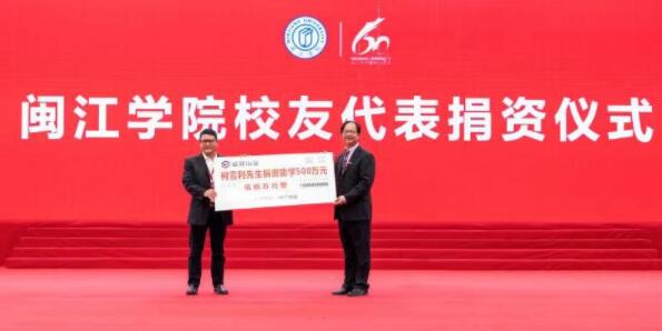 閩江學院的發展得到了廣大校友的關心和支持,在母校60華誕之際,廣大校友以不同方式表達對母校的愛意。1987級校友柯雪利、2010級校友楊剛分別在現場捐資500萬、300萬。慶祝大會上還舉行了閩江學院鳳凰數字媒體學院、致道國際漆藝產業學院、百度大數據創新學院、國家水運安全工程技術研究中心福建分中心的揭牌儀式。