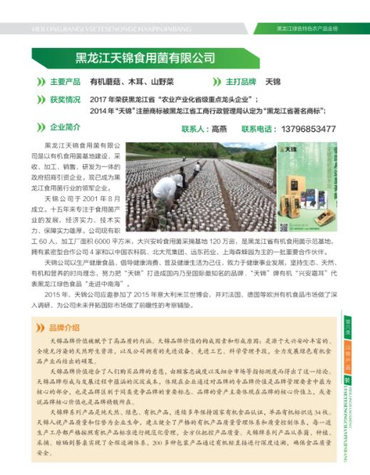《黑龍江綠色特色農產品金榜》畫冊內頁——黑龍江天錦食用菌有限公司