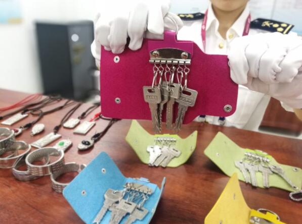 今年7月2日,鄭州機場海關旅檢關員在對乘坐鄭州飛往大阪的CZ8381次航班的乘客進行行李檢查時,一個由領隊殷某、邢某帶領的旅行團引起了關員們的注意,他們發現,團內許多旅客的行李中都有多件形狀類似的鑰匙、吊墜、手環等金屬質地物品。經詢問,這些物品都是領隊要求幫助攜帶出境的。通過仔細查看,關員們發現這些物品的重量、色澤、手感都與普通飾品有很大差別,還有部分物品表層有磨損,露出了金色的物質。進一步查驗後,他們發現這些金屬質地物品疑似黃金製品,該領隊存在走私黃金嫌疑。於是海關關員不動聲色地將涉案物品暫扣,同時立即將該線索移交海關緝私部門處置。